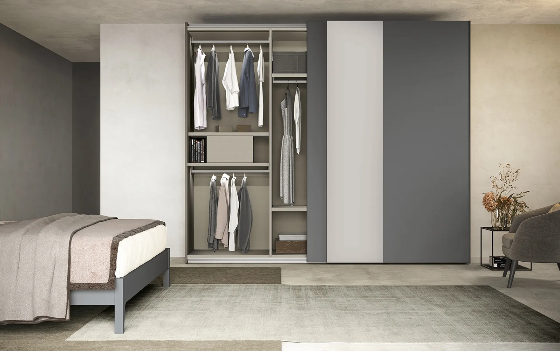 Armadio Freedom N17 di Colombini Casa: compila il form per ricevere info di ogni tipo e consigli per progettare la camera che hai sempre sognato. Contattaci e ottieni informazioni sulla nostra collezione di Arredamento Casa: sarai in grado di completare la zona notte contando su una ampia varietà di contenitori moderni, come l'armadio in melaminico nell'immagine. Gli Armadi a muro con ante scorrevoli sono componenti imprescindibili nella camera da letto, per renderla arredata al meglio, pratica e completa di tutto.
