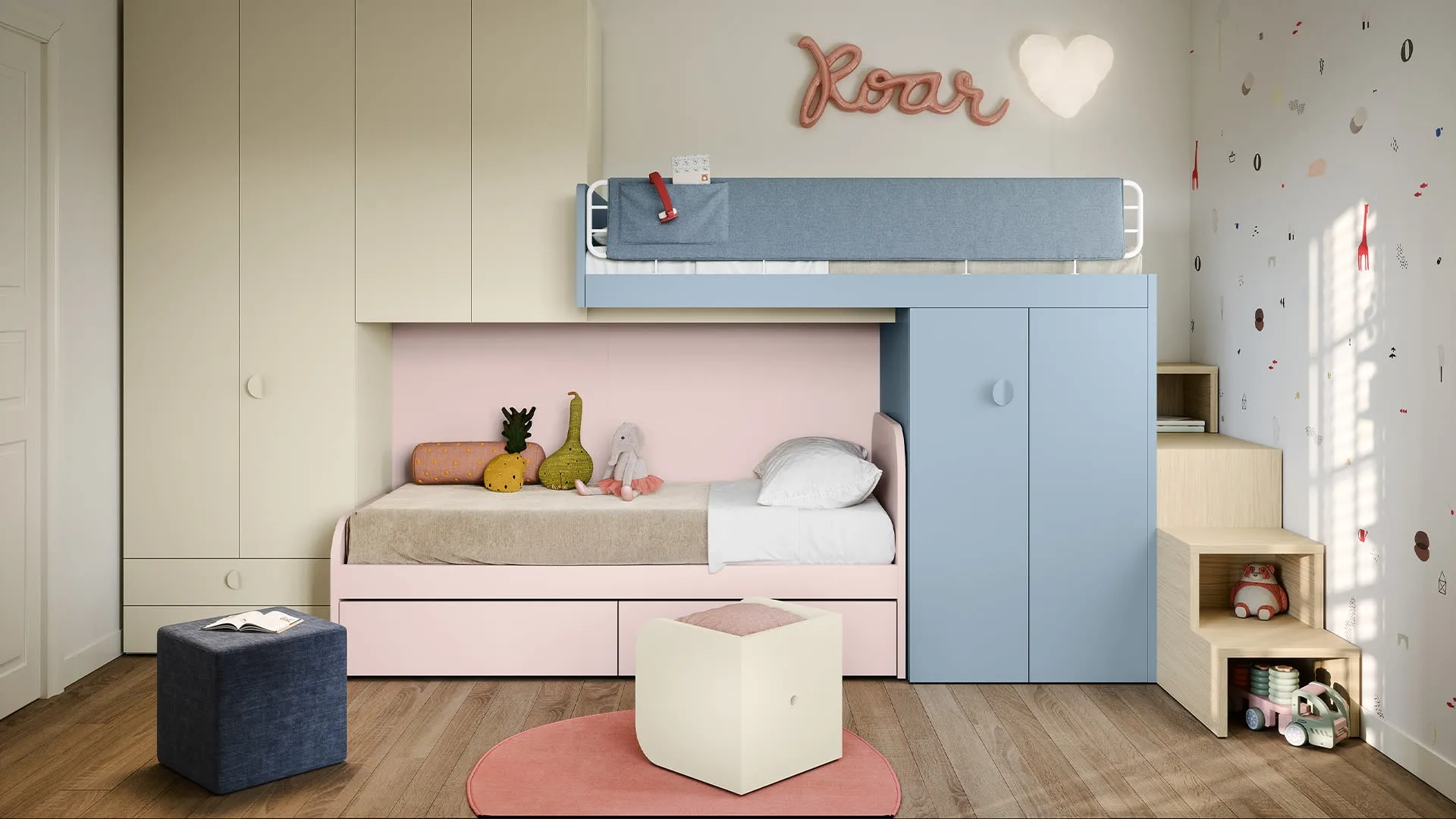 Nel nostro showroom ti guidiamo dalla scelta dell'arredamento per la camera alla progettazione del luogo dove i tuoi bimbi cresceranno, divertendosi e sognando. Con la Cameretta con letti a soppalco di Nidi in melaminico ti assicurerai un perfetto connubio di ergonomia e sicurezza, ideale per la stanza dei tuoi bambini. Le Camerette dei nostri bambini sono il luogo dove cresceranno divertendosi e sognando, dunque è essenziale che lo spazio sia agevole. Presentiamo in negozio diverse Camerette a soppalco moderne per bambine del marchio, ideali per accompagnarli durante la loro crescita.