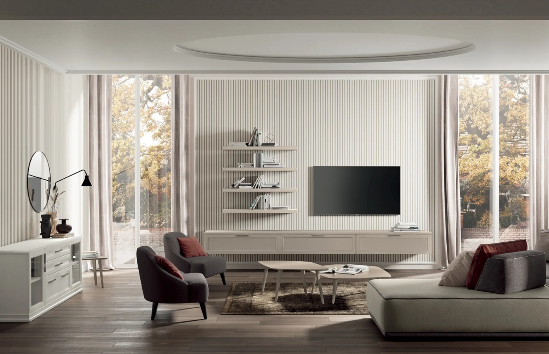 A muro o a centro stanza per ottimizzare un open space, le più belle composizioni d’arredo in commercio arredano il living usufruendo al meglio di lo spazio disponibile. Impreziosisci i tuoi interni con le Pareti Attrezzate classiche di Colombini Casa: nel nostro punto vendita troverai mobili ed elementi accessori di design, in materiali di qualità e delle migliori marche. La Parete Attrezzata Arcadia AS009 di Colombini Casa nell'immagine possiede componibilità su misura e varie possibilità di caratterizzazione: scopri la parete attrezzata qui disponibile e contattaci per maggiori informazioni e preventivi.